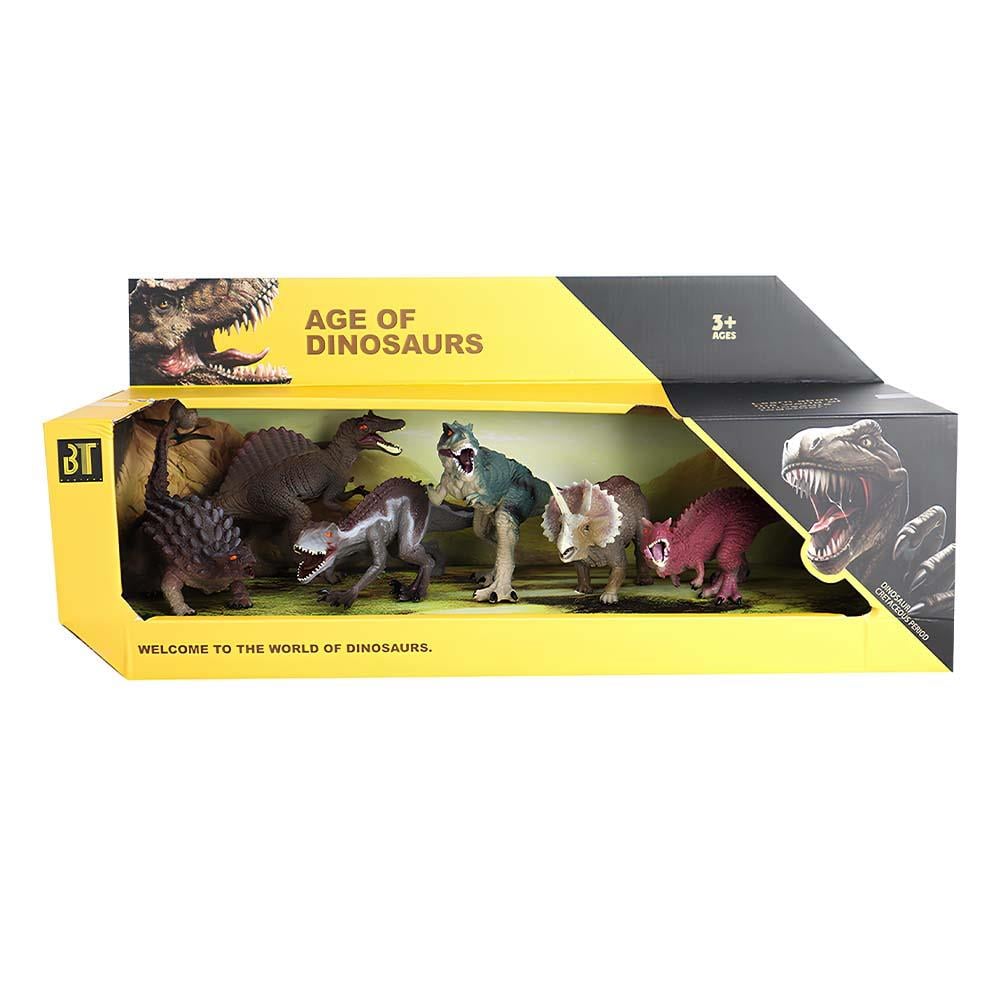 Birbirinden vahşi dinozorlar yepyeni karşılaşmalar için eski çağlardan günümüze geldiler! Bu dinozorlar o kadar gerçekçi ve detaylı ki, bunun gerçek olduğunu düşünebilirsiniz! Çocuklara hayvan sevgisini aşılarken yaban hayatı hakkında da bilgi sağlar. Bu büyüleyici hayvanları tanıyın ve dinozorların vahşi hayvan figürleri ile kendi hayvanat bahçesi oyuncak koleksiyonunuzu oluşturun! Dinozorlar alemini bu hayvan oyun seti ile keşfetmeye hazır olun! Dinozor türlerinin hepsi şimdi tek pakette! Gerçekçi görünümlü bu dinozor figürleri evinize renk katacak. Ayrıca çocuklar dinozorların bilinmeyen dünyasını bu hayvan seti ile eğlenerek öğrenebilecekler. Çocuklar set içerisinde yer alan birçok çeşit hayvan türü ile farklı oyun alanları kurarak hayal güçlerindeki oyunları oynayabilecekler. Siz de çocuklarınızın oyunlarına katılarak onların kavramları doğru öğrenmelerine yardımcı olabilirsiniz. Hayvan figürleri özellikle çocuklar için eğitici ve öğretici özelliğinin yanı sıra büyükler için de nostaljik bir koleksiyon figür olarak da dizayn edilmiştir. Sağlığa zararsız ve kaliteli malzemeden üretilmiştir. 6 parça dinozordan oluşmaktadır.