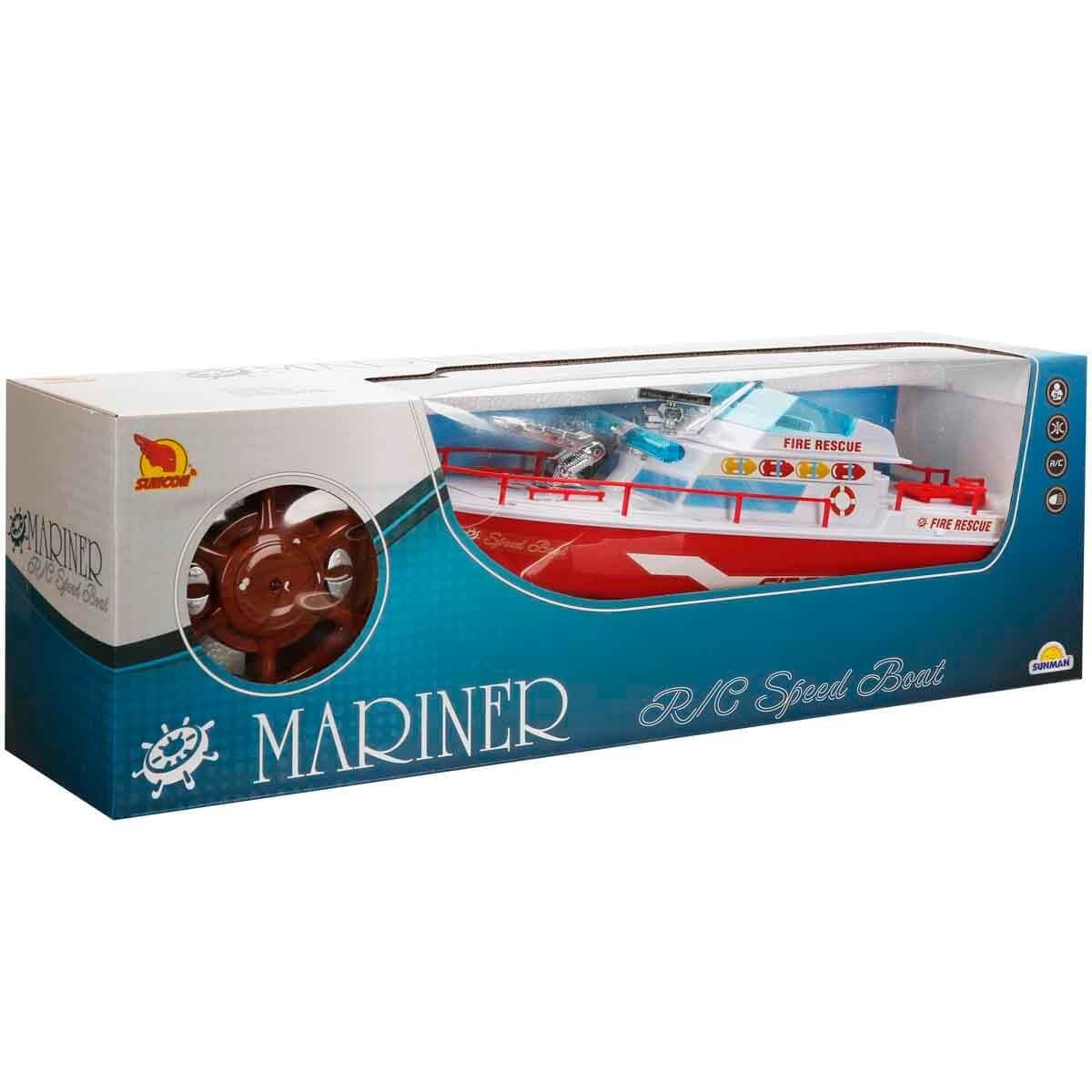 Set içerisinde; tekne ve dümen simidi şeklindeki uzaktan kumandası yer almaktadır.